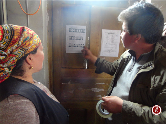 明确包联分工,激活神经末梢。巴格其村驻村工作队根据六个村民小组分布情况和“村级走访组”、“村民小组走访组”“片区走访组”三个层次,分别制定了党员干部便民联系卡,将各层次包联人员的照片、职务、联系电话进行了公示,并在便民联系卡上分层次区分了每户群众的具体包联人,与“三定三包三覆盖”责任分工进行了有机统一,工作队成员在入户走访过程中张贴到每家每户,使“三定三包三覆盖工作”群众工作法家喻户晓。截至目前,全村共张贴党员干部便民联系卡453张,实现了全村全覆盖。