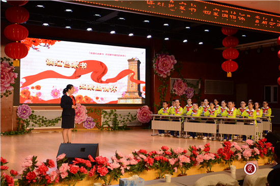 革命先烈赵一曼、刘伯坚牺牲前所作的红色家书让大家再一次感受到浓浓的家国情怀。来自昌吉市第五小学的少先队员们一首《烈士墓前》献词,慷慨激昂,铿锵有力的声音响彻礼堂的每一个角落。最后,一曲大合唱《国家》将活动推向了高潮……
