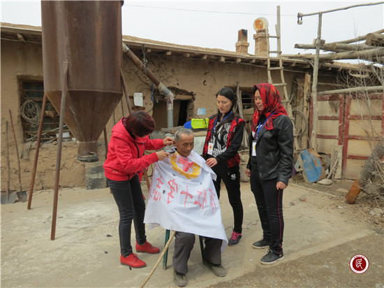4月6日,工作队和志愿者服务队、党员、入党积极分子、计划生育宣传员门,来到空巢老人陈启华和贫困母亲马金兰家,帮助两位老人打扫庭院卫生、室内卫生、为老人理发、陪老人聊天,活动结束后,大家一起将沿街主干路上塑料袋、包装盒等生活的垃圾进行了清理,并向村民广泛宣传环境卫生整治和春季防病的知识。
