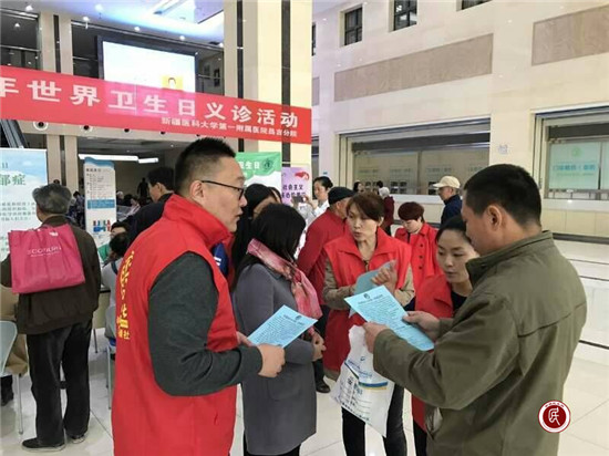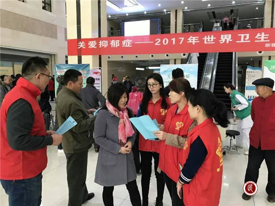 新疆民生网讯 (通讯员  刘振)精神健康是精神不可缺少的重要组成部分,每个人不仅需要身体健康,也需要精神健康。4月7日是第68个世界卫生日,今年的主题是“共同面对抑郁,共促心理健康”,在世界卫生日之际,新医大昌吉市分院、昌吉市农广校驻建国路街道嘉顺社区工作队举办了“关注抑郁症—2017年世界卫生日义诊活动”。