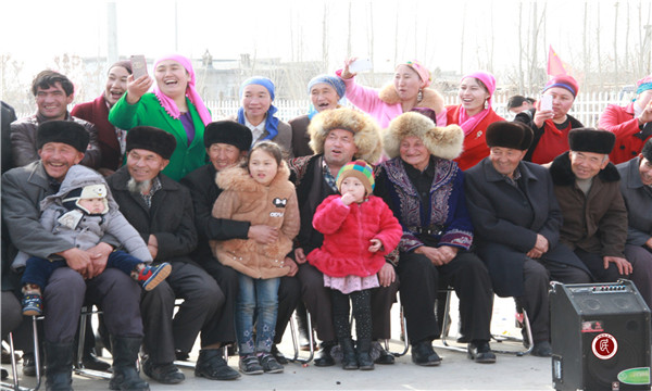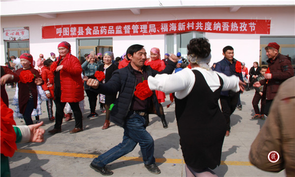 呼图壁县食药监局驻五工台镇福海新村工作队与村民共度节日大伙看得真开心
