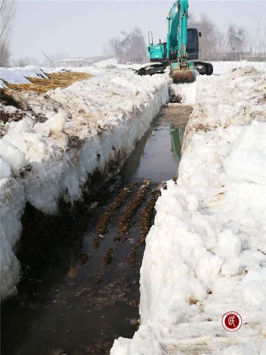 图4.渠道冰层清理完毕后,渠道已正常的开始排水