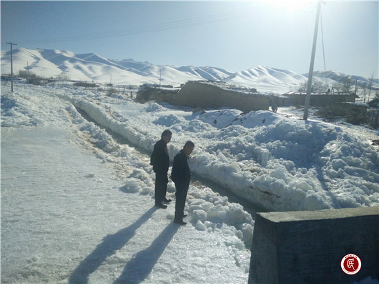 新疆民生网讯 (通讯员 赵颖)奇台县工商银行、农业银行、农发行、人民银行驻东湾镇根葛尔村工作队正式进驻当天,行李都没来得及收拾,就接到群众求助,五组的桥洞因结上了厚厚的冰,堵住了水道,严重影响排水,村民想尽了办法还是挖不动,任凭巨型“冰疙瘩”霸占通道。工作队获悉后,迅速来到现场实地勘察。