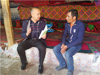 4月10日克孜勒苏调查队驻皮拉勒乡托格其村2017年“访惠聚”工作队队长带领全体队员对特殊群体及其亲属分别开展了走访谈话和教育转化工作。