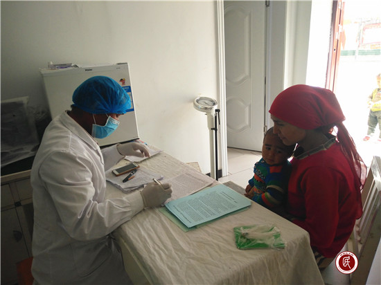 新疆民生网讯 (通讯员 赵春霞)2017年4月10日,吉勒尕博依村的“访惠聚”工作队全体成员伴着村民春耕的紧张步伐,也早早起床梳洗妥当,要完成今天晨会安排的工作议程:宣传、通知全村2013年1月1日至2016年12月31日出生的儿童前来大队的接种疫苗点,进行脊髓灰质炎的糖丸疫苗接种。