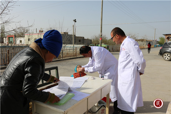 新疆民生网讯 (通讯员 徐元军 西热艾力·艾麦提)2017年4月10日清晨8:50时许,在阿热多斯库里村院内显得十分热闹,不时传出了一阵阵嬉笑声………这周星期一举行的升国旗仪式和上周星期一不同的是许多妇女都抱着小孩,升国旗仪式完毕后,妇女们抱着孩子,纷纷涌向村委会大门口。这时村级卫生室门口,整齐摆放着几张桌子和几个药箱,站着几位穿着白大褂的医生,原来这是准备为孩子们进行阿克苏市喀拉塔勒镇第二轮的脊髓灰质炎强化免疫接种工作拉开帷幕。