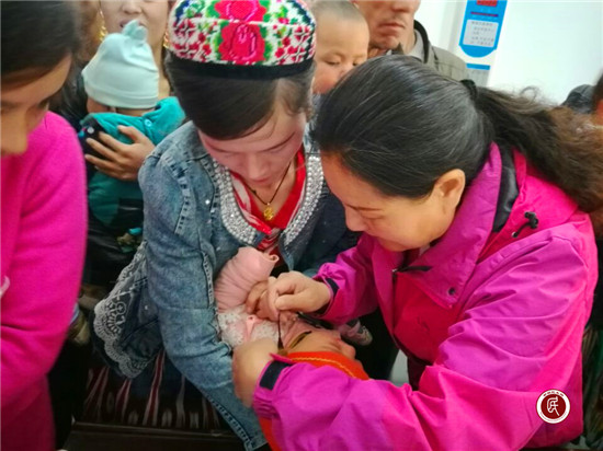 帕来其村村医护人员向村民耐心讲解了预防小儿脊髓灰质炎的相关保健知识,脊髓灰质炎是一种严重危害人类健康传染病,在乡村很多贫困家庭都是由于重大疾病造成的,同时给村民发放宣传资料。在免费为大家发放疫苗,有效避免疾病的情况下,村民们积极配合。随后,“访惠聚”工作队协助村医务人员为适龄孩子服下疫苗,并认真做好发放儿童的登记备案工作,确保适龄儿童百分百接种。