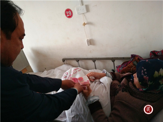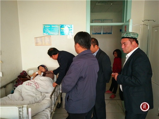 新疆民生网讯 (通讯员 徐大伟 买买提江·玉素甫 )2017年4月9日上午,当阿克苏市依干其村(社区)联合党委第一书记、潞新公司“访惠聚”驻依干其村工作队队长吾斯满·玉素甫将6100元钱交给躺在病床上的孤寡老人吐拉汉·吾秀的手里时,老人家感动得老泪纵横,连声说:“感谢党组织的恩情,没有你们的关怀和帮助,我这把老身子骨早就撑不住了……”