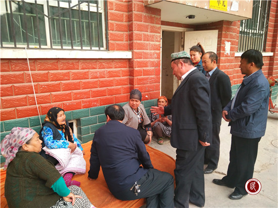 之后,村班子一行人又马不停蹄地看望了80多岁的孤寡老人毛莉托呼提·吞外库里。老人也是身患绝症好几年了,但老人家的精神状况不错,她乐观得说:有这么好的党和政府,我才不会轻易的“走”呢!老人家豁达开朗的一番语言,引得大家哈哈大笑,小区里不时传出朗朗笑声……