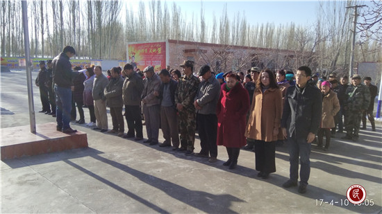 新疆民生网讯 (通讯员 段波)4月10日早上9:30分,在种羊场牧业三队连队大院里,连队的农牧民、党员、十户长、连队干部、驻村工作队成员164人,陆续来到连队大院国旗杆下,准备参加每周一的升国旗仪式。