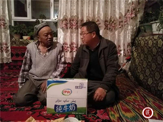 工作队得知此事时一直给予其家庭很大的帮助,并深入了解其家庭情况和他的病情。当天晚上就带了营养品对其进行了慰问,并立即与县人民医院联系了就诊事宜,第二天上午阿塔吾拉·玉素甫在其儿子的带领下顺利入院治疗。