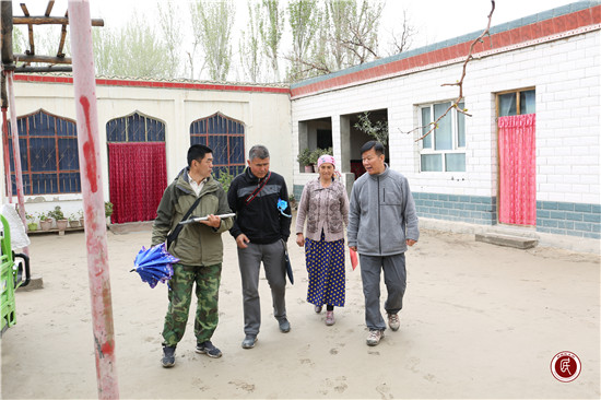 傍晚时分我们来到艾麦提·依明家,“老人家您好!我们来看看您,身体都好吧,庄稼都种上了吗?家里还有什么困难吗?需要我们工作队做些什么吗?”工作队队长李贵华问到。老人乐呵呵说道:“李书记亚克西,窝特容、窝特容(请坐),前段时间我们老两口都参加了免费体检,医生说我们身体都很好;庄稼前几天就种上了,种粮政府给补贴,大家的积极性都很高,早早的就开始计划了,这不一开春就忙活起来了;现在我们老两口没啥困难,吃得好、住的好,您看看这房子,是去年新盖的安居房,大家也都盖起了安居房,以前那吃不饱、穿不暖、住窝棚的日子一去不复返了,这一切都归功于党的领导,归功于党的各项好政策。现在我们老两口就想着能为党做点事,来回报党的恩情,告诉大家现在生活的来之不易,告诉大家不要相信‘三股势力’的谎言。”时间在老人和李书记的交谈中流逝。天色渐晚,我们顺利的完成了一天的走访任务,走在回家的路上。