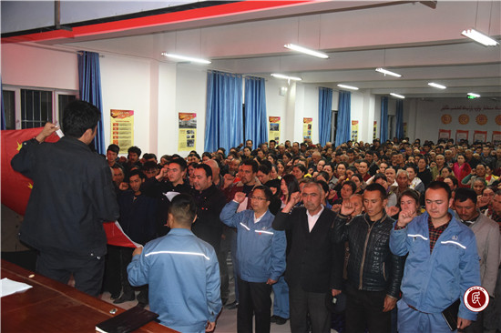 新疆民生网讯 (通讯员 陈虎)4月10日上午,塔河炼化公司驻色根苏盖特一村“访惠聚”工作队在每周例行升国旗仪式结束后,组织村干部和600余村民开展了“我是中国公民”宣誓活动。