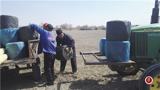 在得知春播已开始,交通局工作队的队员们也赶往地头,帮助村民扛滴灌带、向播种机放种、铺膜,虽然来之前没有干过这活,但大家还是有模有样,不怕脏、不怕累,做的一丝不苟。村民徐少兵一再阻止曹琰扛滴灌带,害怕他受伤,但曹琰还是抱起了滴灌带放进播种机……