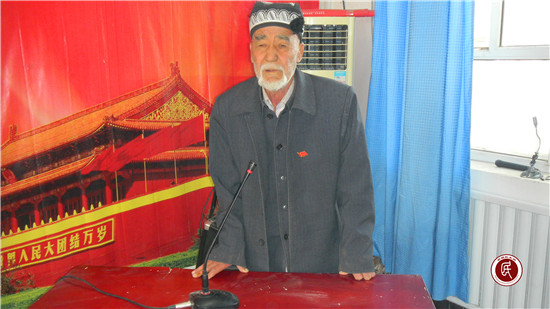 老党员苏布东·艾吾吾拉说:“作为一名40岁党龄的老党员我要主动发声,坚决不做‘两面人’,特别是在日常的生活中主动对一些危害国家安全、不利于民族团结的行为发声亮剑,用自己实际的行动来维护民族团结,维护新疆的社会稳定和长治久安。”