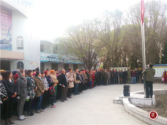 新疆民生网讯 (通讯员 卡合尔曼·吐木尔)每周一,阿克苏市红桥街道托喀依社区“访惠聚”工作队对本辖区内居民每周一国旗旗仪式活动。