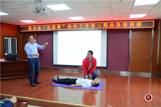培训班还邀请了新区医院急诊科主任顾俊文和昌吉电信公司职员周浩分别教授了心肺复苏法相关知识和手持对讲机系统及IPTV视频系统操作方法。此次培训采取理论讲解和实践操作相结合的方式,深化了参训人员对“访惠聚”驻村工作的思想认识,提高了工作队的业务能力和水平,为工作队更好地开展驻村工作提供了有效指导。