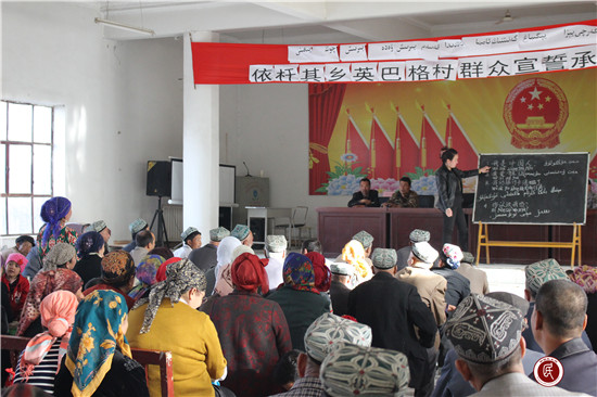 新疆民生网讯 (通讯员 李腾飞)阿克苏市依干其乡英巴格村自从驻村工作队恢复了农牧民夜校开始教授双语课以来,村里掀起一阵学习汉语的高潮。