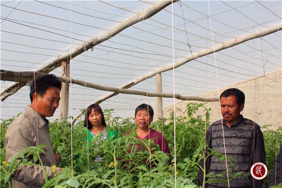 随后,又来到12区蔬菜种植户王玲的大棚地里认真查看了一下西红柿的长势,结合几户种植户种植管理情况进行对比,对温室大棚蔬菜种植管理温湿度、光热、疏果、种植的时节等方面进行了讲解,对控苗增产进行了现场操作。