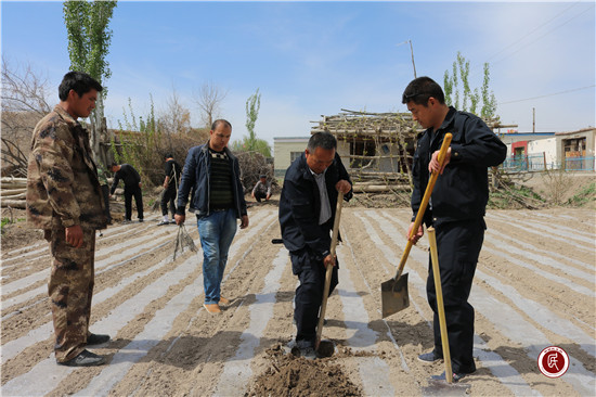 新疆民生网讯 (通讯员 徐元军、西热艾力·艾麦提)4月15日午后16时许,阿克苏市城市管理行政执法局驻喀拉塔勒镇阿热多斯库里村工作队特意到巴扎,为该村2组28号的亚生·苏莱曼,购买了嫁接好的核桃树苗。 据了解,亚生·苏莱曼是聋哑残疾人,因其家庭困难,近期只在自家果园里栽了寥寥无几的核桃树,只好告一段落。得知此状况,驻村工作队队长罗新带领村干部、民兵种下了希望之树、致富之树也是团结之树,希望他的生活越来越美好,为鼓励弱势群体指明了勤劳致富方向。
