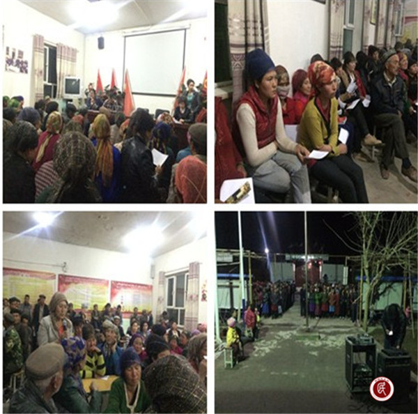 新疆民生网讯 通讯员 葛晓蜜)“起来,不愿做奴隶的人们……”近日来,傍晚时分,村民们齐唱国歌的声音回绕在喀拉布运村大队部的大院里。