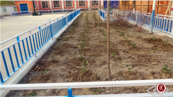 新疆民生网讯 (通讯员 张新萍)4月15日,拜城县供销社驻温巴什乡博斯坦村工作队为村委会大院绿化环境,并给绿化带安装了防护栏,为村委会大院增加了一道亮丽的风景线。