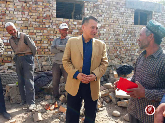 在新农村建设现场,迪力夏提·柯德尔汗州长仔细询问了今年新农村建设的目标和任务,根据新要求,第一书记如何保质保量开展工作,农民是否及时享受到国家的惠民政策等。随后,迪力夏提·柯德尔汗州长来到本村被教育转化人员家属买买提江·肉孜家,详细了解了他们在生产生活中遇到的困难和当前急需解决的问题后,安抚家属情绪,为他们讲解受教育人群在教育转化当中,通过学双语、学法律、学政策,最终成为一个为社会有用的人,最后送去慰问金表示慰问。
