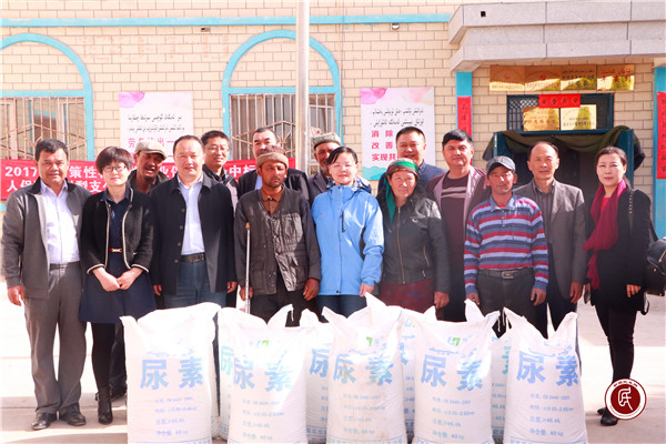 领到 “爱心”化肥,村民们笑逐颜开,贫困户依不拉音·吾加阿不都接过捐赠的化肥,激动地说:“谢谢你们,谢谢,我们一定好好干活,争取有个好收成,早日脱贫!”