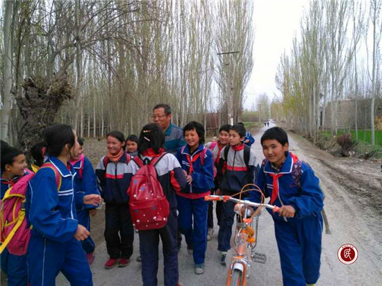 新疆民生网讯 (通讯员 马祥钧、陶惠轩)夕阳西下,阿克土村的乡间小路上,一群放学的孩子们不约而同的边走边聊着,久久不肯回家,是什么吸引这些孩童们放慢回家脚步,原来是华电新疆公司驻阿克陶县皮拉勒乡阿克土村工作队队长、驻村第一书记沈一凡特意在孩子们放学回家路上给孩子们来一场“微宣讲”。