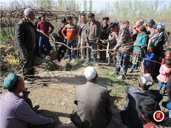 新疆民生网讯 (通讯员 吴疆平)为了更好地提高村民庭院内葡萄种植科学化、规范化管理水平。4月9日,自治区纪委监察厅“访惠聚”驻阿克陶县巴仁乡古勒巴格村工作队邀请克州林业局的专家,举办了葡萄栽培管理培训班。来自村里的100多名村民参加了本期培训班。在培训班上,由邀请来的专家手把手教村民管理、修剪葡萄的技巧和方法,将葡萄增产增收的要领一一详细进行了讲解,并现场为村民们释疑解惑。