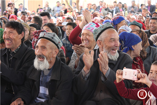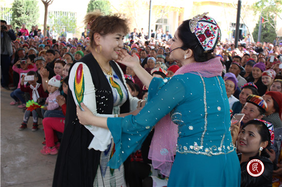 4月16日上午,依干其村文化广场迎来了新疆艺术剧院歌舞团的艺术家们,依干其上千名村民因此欣赏了一场激动人心的文化盛宴。