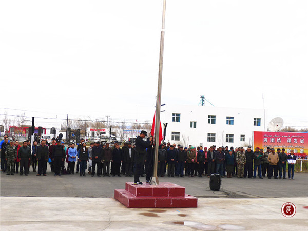 上午10点整,吉木乃边合区党工委书记张国华和曹万利副主任准时来恰勒什海乡达海齐村与大家一起举行升国旗仪式。升旗仪式后,张国华向大家全文宣读了《致维吾尔族同胞觉醒书》,引发大家的强烈反响,大家积极发言,纷纷表示要自觉维护民族团结,旗帜鲜明地与“三股势力”作坚决的斗争,努力维护社会稳定和长治久安。
