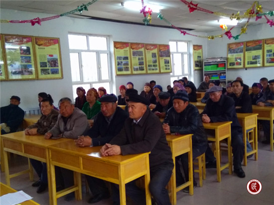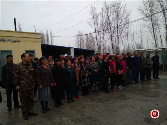 工作队长梁劲松:“今天我们按计划在这里进行《自治区去极端化条例》宣讲的同时,对上周积极参加村级活动,值班执勤表现突出,植树劳动积极踊跃,周日捡拾垃圾表现好的巷道长和个人进行表扬奖励,并把他们的典型事例张贴在村办公室门口公示栏,让大家学有模样 、做有榜样,不断带动和激发大家积极投入到村级事务中来”。