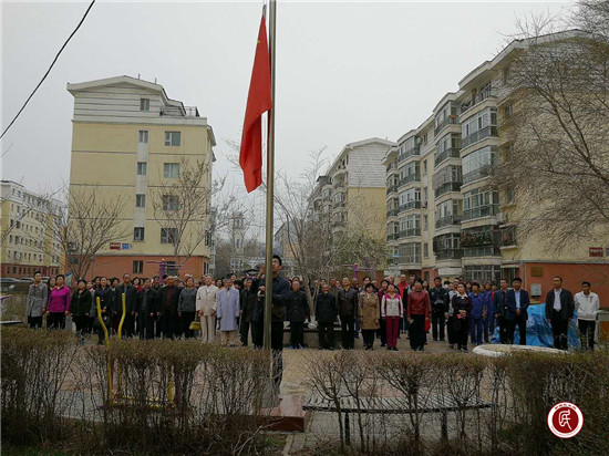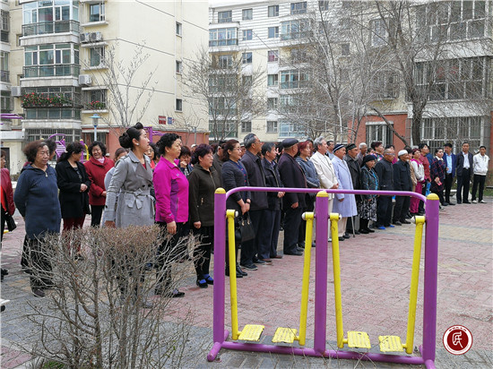 4月17日10点整,艺园社区全体干部、中国农业发展银行昌吉州分行驻艺园社区“访惠聚”工作队、辖区居民又迎来了每周一的升国旗仪式。伴随着庄严的国歌声,面对冉冉升起的国旗,居民怀着激动的心情,向鲜艳的五星红旗行注目礼,用纯朴的升旗仪式强化感恩意识。在升旗仪式结束后,“访惠聚”工作队队长周刚在国旗下进行宣讲。宣讲内容传达了中共昌吉市委副书记、市长的《感恩伟大祖国 维护民族团结 立场坚定地维护稳定和长治久安》全文内容,再次激发了居民代表的一度热议。