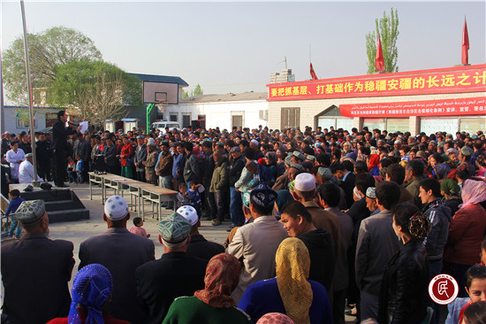 新疆民生网讯(通讯员 毛士明)《新疆维吾尔自治区去极端化条例》颁布以来,林业厅驻阿克苏市阿依库勒镇萨依买里村工作队组织村两委班子成员、驻村工作队、管寺干部、学前“双语”支教干部和全体村民充分利用农民夜校、星期一升国旗仪式、党员干部学习、村民大会、工作例会等多种形式,开展常态化学习宣讲,使干部群众了解宗教极端化的15中具体表现,认清宗教极端思想的反动本质,自觉抵制宗教极端思想的渗透,以实际行动维护民族团结,维护社会稳定。