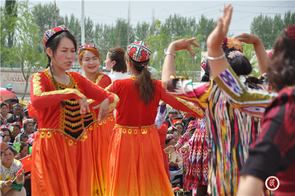 村民热依汗大妈激动地说,“听说今天有演出,我和大队上的姊妹们早早就换上最漂亮的衣服等待演员们,这些节目平常都得在电视上才能看得到,没想到今儿个送到我们家门口了。”
