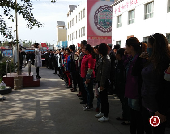新疆民生网讯(通讯员 吴芳)4月17日,像往常一样,我们工作队再次参加了每周一例行的升国旗日。这是一个阳光明媚的早晨,伴随着广播里《我的祖国》优美的歌声响起,前来参加升国旗仪式的各族群众怀着激动的心情,自发在升旗台前排列成一行行整齐的队伍。院内飘着淡淡的梨花清香,场内人头攒动而不失秩序,群众们随着广播轻轻哼唱着发音不那么准确的歌曲,在两遍《没有共产党就没有新中国》播放结束后,古勒阿瓦提社区干部拿着名册开始点名,点到的群众也很配合的高声应到,一切都有条不紊的进行着。社区所有干部和工作队成员在社区书记李明的带领下站在了队伍的前排。10:00整准时开始了升旗仪式,国旗手由社区干部张兆辉担当。庄严的《中华人民共和国国歌》奏响时,国旗也徐徐升起,人们都挺起了脊梁和胸膛,神情或凝重,或激动,目光随着国旗一点点在升高,有的群众嘴里也轻声唱起了国歌。虽然只是短短一分半的国歌,但大家的内心都油然而生一股使命感和责任感。“爱我中华,爱我中国”,五十六个民族共系一心,共筑一个中国梦。