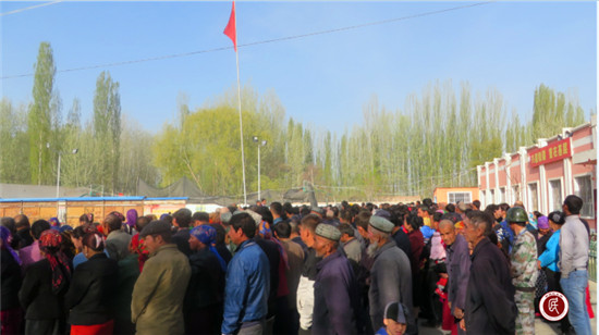 4月17日,利用周一升国旗活动,在国旗下向村民宣讲了自治区建立和实施人身意外伤害保险的惠民政策。657名村民参加了宣讲活动。