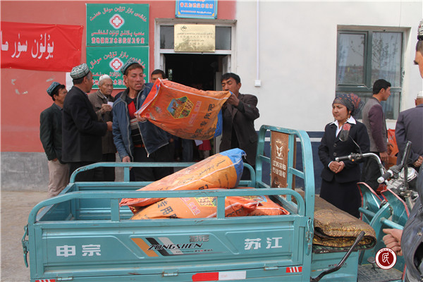 原来,是自治区发改委驻村工作队发放化肥了,这不,都往自家地里奔呢!化肥来了,麦麦提老人甭提多高兴了,握着工作队队长、第一书记依玛木的手激动地说道:“感谢工作队,上个月底给我们请来了专家进行了巴旦木、核桃、棉花、小麦等种植管理技术的培训,4月初又给我们发了农药,现在又给我们发放化肥,次次都是及时雨啊!这次多亏了你们,没有延误了施肥的最佳时期,来年肯定是大丰收!”村民的事就是工作队的事,要用真情、真心、真融入,帮助村民解决实际困难,让村民真正感受到党的关爱和祖国大家庭的温暖,用实际行动访民情、惠民生、聚民心。