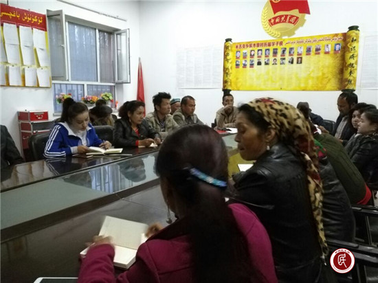 新疆民生网讯 (通讯员 马名副)昨日,新疆维吾尔自治区党委九届二次全体(扩大)会议召开后,拜城县文体广影局驻米吉克乡库木墩村工作队立即行动,先学一步,通过网络和微信平台,认真学习领悟会议精神,掌握精髓要义,并于4月19日上午组织村“两委”班子、党员、村小组长等40余人开展了以学习新疆自治区党委九届二次全体(扩大)会议精神为主题的宣讲活动,号召大家全面深入贯彻扩大会议精神,聚焦总目标牢固树立政治意识、大局意识,坚定不移维护社会稳定和民族团结,齐心协力,共建美好家园。
