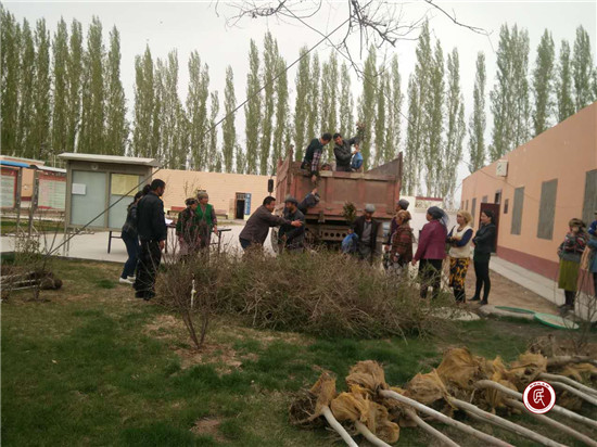 春季万物复苏,正是栽植苗木、树木的大好季节,为了做好米斯买里村村委会绿化建设工作,先后三次为米斯买里村运送鸢尾、榆叶梅、金叶榆、白蜡、水腊等苗木到移栽现场。工作队与群众们分工协作,配合默契,工作队设计规划、村民挖树坑,工作队栽树苗、村民平土方,工作队修剪苗木、村民放水浇水,干的不亦乐乎。三个小时过去了,村委会换了一个新面貌,回收望去一排排行道树、一簇簇灌木丛、一道道绿篱不仅凝聚着民族团结之心在里面,而且也是各族群众对美好生活的向往。
