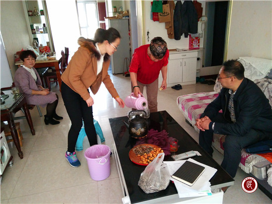 新疆民生网讯 (通讯员 姚丽)2017年4月19日,玛纳斯县档案局驻玛纳斯镇东关社区工作队在社区书记崔春霞的带领下看望了东关社区七旬老人马太美,了解家庭基本情况,倾听群众的心声,拉近了与社区居民之间的距离。