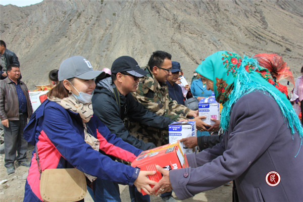 4月15日上午,驻村工作队员一行5人在李建军队长的带领下,会同村“两委”班子成员和部分村民代表,带上大米、清油、砖茶和冰糖等慰问品,驱车近3个小时、行程60余公里,一路颠簸、历经艰险来到位于海拔3000余米的肖热力地区(音译)第三村民小组,慰问走访住在山区的牧民群众,给他们送上党的关怀与温暖。驻村工作队充分利用这次难得的慰问走访时机,向广大牧民群众大力宣讲党的恩情和党的民族、宗教、惠民政策,大力宣讲《新疆维吾尔自治区去极端化条例》内容,大力宣讲克州党委“三个通告”精神,讲清加强民族团结的重要性,讲清“三股势力”的危害性,讲清维护社会稳定的紧迫性,教育引导广大牧民群众爱党、爱祖国、爱社会主义,感党恩、听党话、跟党走。