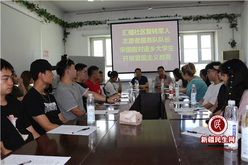 克拉玛依市市场监督管理局驻汇福社区工作队注重返乡大学生思想教育,结合社区优势,开展“守护美好家园座谈会”、“听退伍军人讲爱国故事”等形式多样、内容丰富的暑期思想教育活动,丰富返乡学生暑假生活的同时,传播正能量。